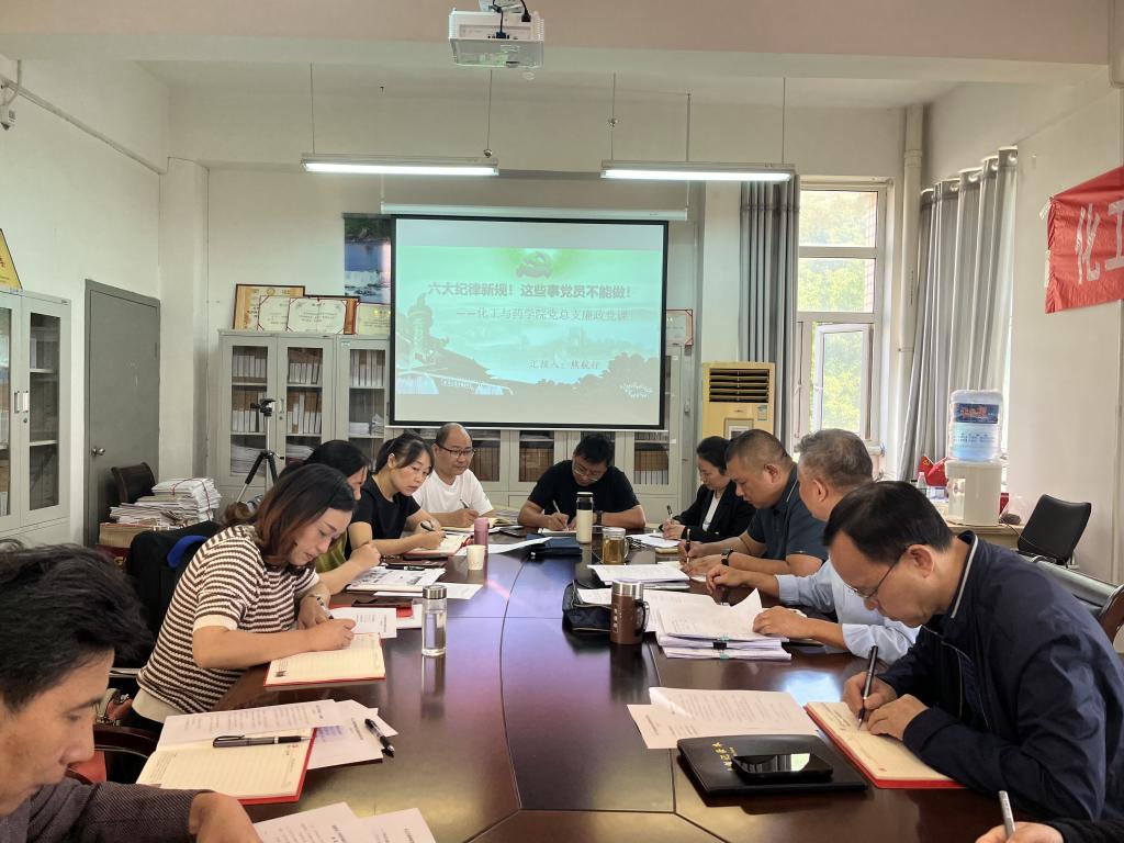 9月26日上午,化工与药公司党总支书记熊航行以“六大纪律新规 这些事党员不要做”为题开展廉政党课。