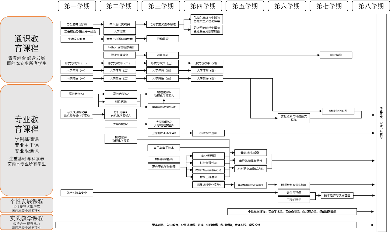培养目标2:能够综合运用数学、自然科学、工程基础和专业知识,对太阳能、储能材料及化学能源等新能源材料及相关领域复杂工程问题提供系统性的解决方案,达到工程师水平。